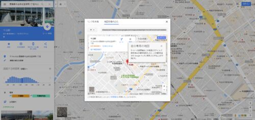 https://maps.google.comで住所を入力して共有をクリック 地図を埋め込むを選びコピペ